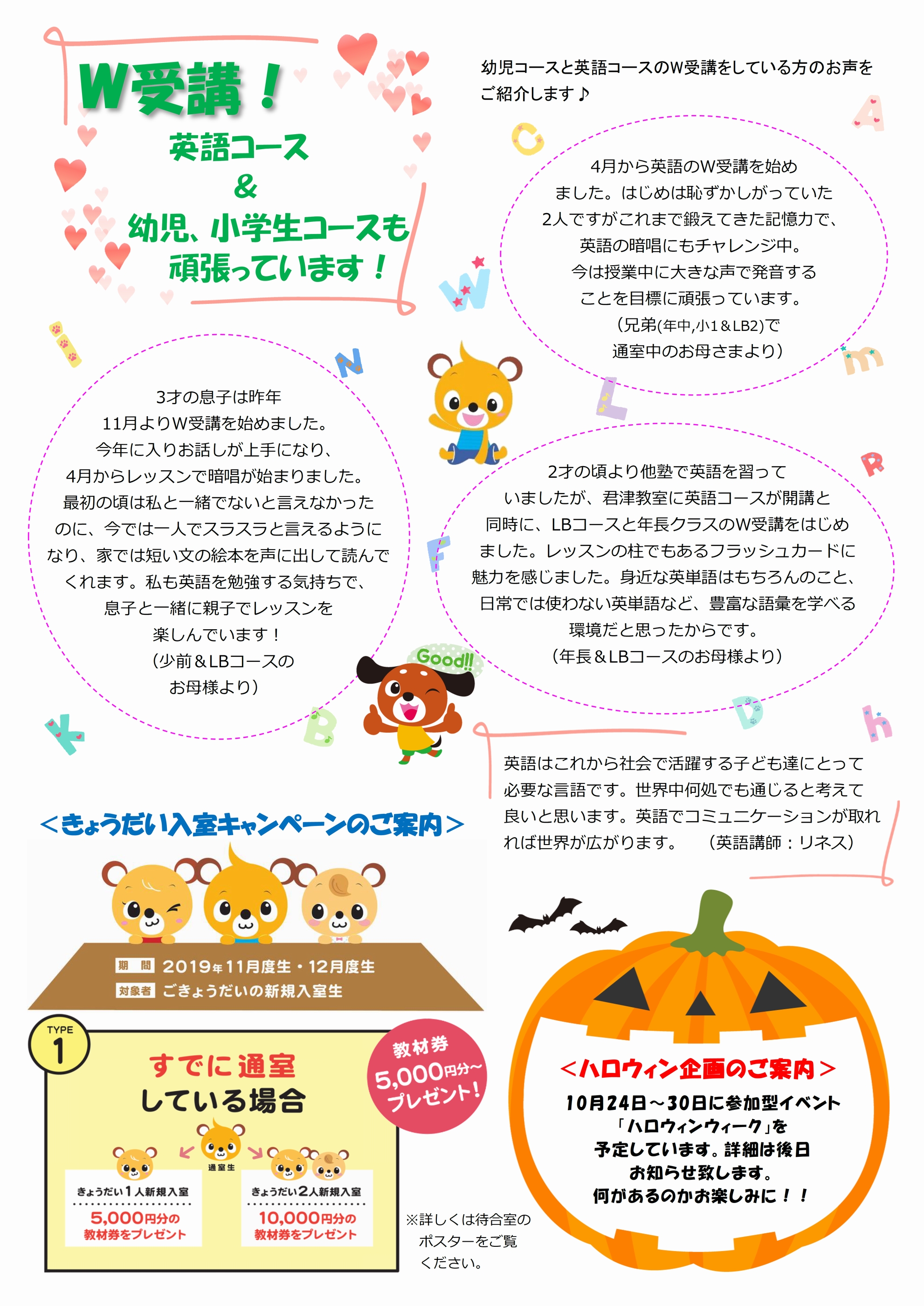 その他にも、子ども達や保護者の皆様の声、イベントやキャンペーンなどの情報も掲載しています。ぜひカラー版でご覧ください(^^)/